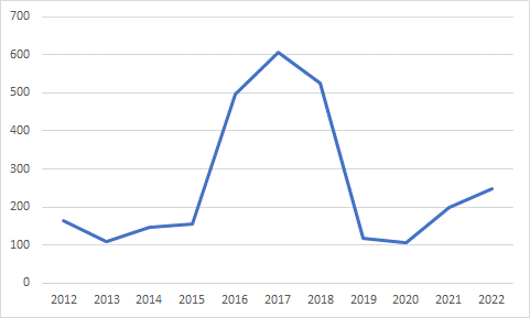 According to data from the Stockholm International Peace Research Institute’s (SIPRI) Arms Transfer Database, Israeli defence exports to India over the 11-year period from 2012 to 2022 amounted to $2.9 billion. During this entire period, India was Israel’s single largest customer, with sales peaking at $607 million in 2017. In 2022, India purchased defence products worth $247 million, which constituted about 30% of Israel’s total defence exports for the year.