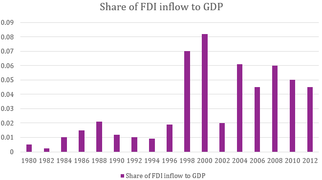 Although the stabilisation measures were able to address some of the structural issues in the Korean economy for a short time, in 1997, the South Korean economy faced an economic crisis. The crisis was due to structural problems in the financial and corporate sectors: reeling from losses in other Southeast Asian economies, foreign investors decided to reduce their exposure to Korea. Following the crisis (see Box 2) on December 4, 1997, Korea committed to a programme of macroeconomic adjustment and structural reform supported by a stand-by arrangement from the IMF for Special Drawings Right (SDR) US$ 15.5 billion19. Following the oil-induced worldwide recession and Korea’s crop failure in 1980-81, the Korean government revoked some subsidies and preferential policy loans20. By this time, policymakers had created the foundation for the heavy and chemical industries. In 1985, they replaced the positive list (allowing Foreign Direct Investment [FDI] in specific sectors) with the negative list (allowing FDI in all sectors except where expressly prohibited), which led to a substantial increase in the number of industries open to FDI21 (see Figure 3).
