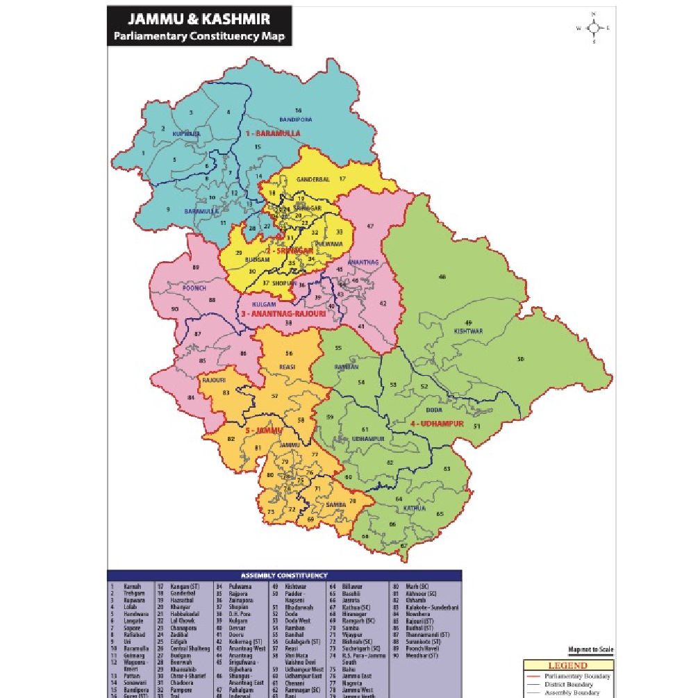 - Six Parliamentary constituencies: Baramulla, Srinagar, Anantnag, Ladakh, Udhampur, and Jammu