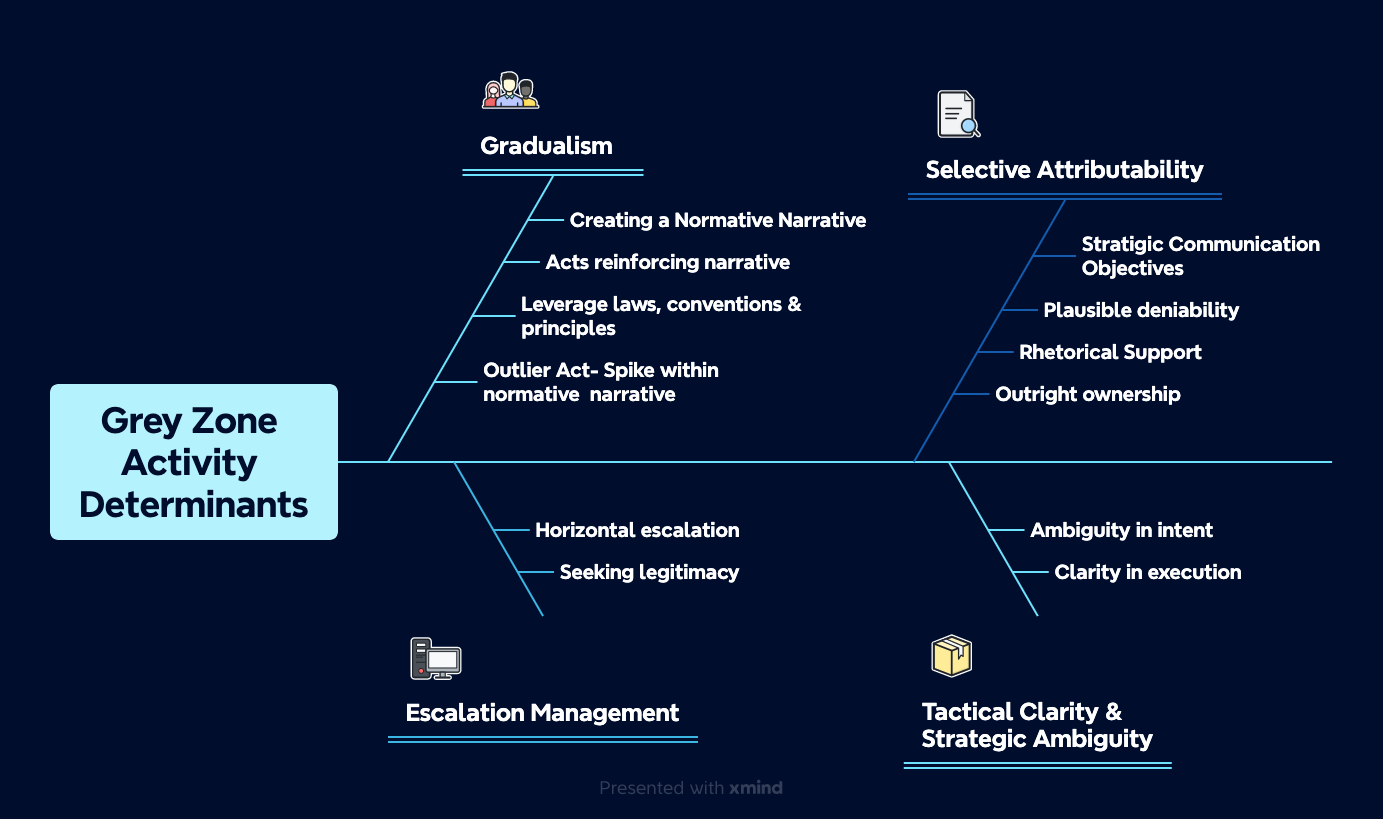 Threats in the Grey Zone are characterised by tactical clarity in execution. This clear tactical level execution is done while retaining strategic ambiguity about the intended objectives of the tactical action, which causes decision dilemma in the minds of the institutional and national leadership of the target state.