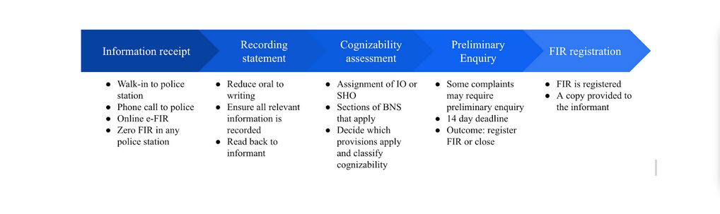 The visual below summarises the chain of events for the FIR registration process in India.