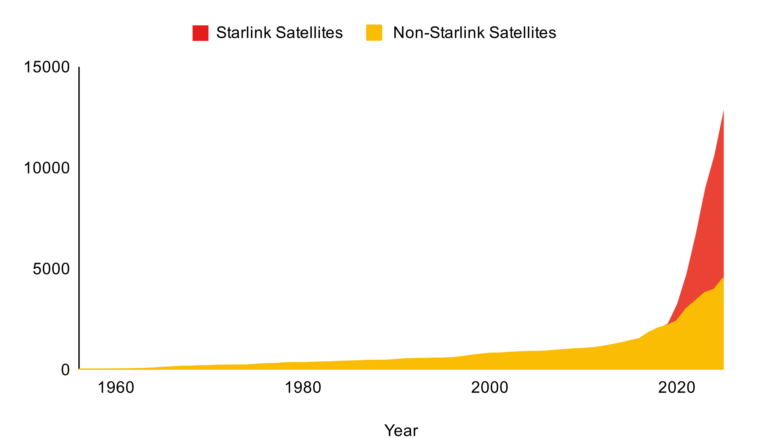 SpaceX has launched more satellites in the last five years than in the first 50 years since Sputnik. Over 60% of all active satellites are Starlink satellites. Over 70% of all active satellites are internet megaconstellations. These constellations are all still in the initial stages of their planned total deployments.5