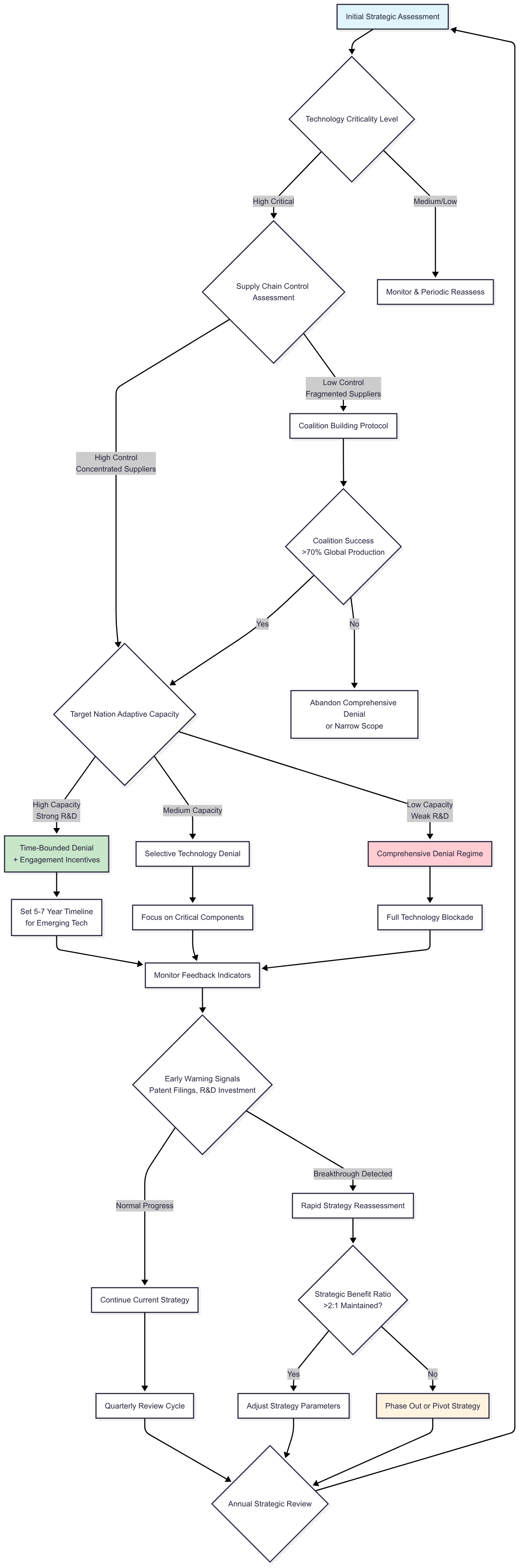 The long-term efficacy of technology denial regimes depends largely on their capacity for adaptation to shifting technological and geopolitical conditions, as shown by the history of nuclear and space technology limitation over the past several decades. Technologies that are cutting-edge today may become widely available within a few years, while requiring constant updates to restriction lists and enforcement mechanisms.