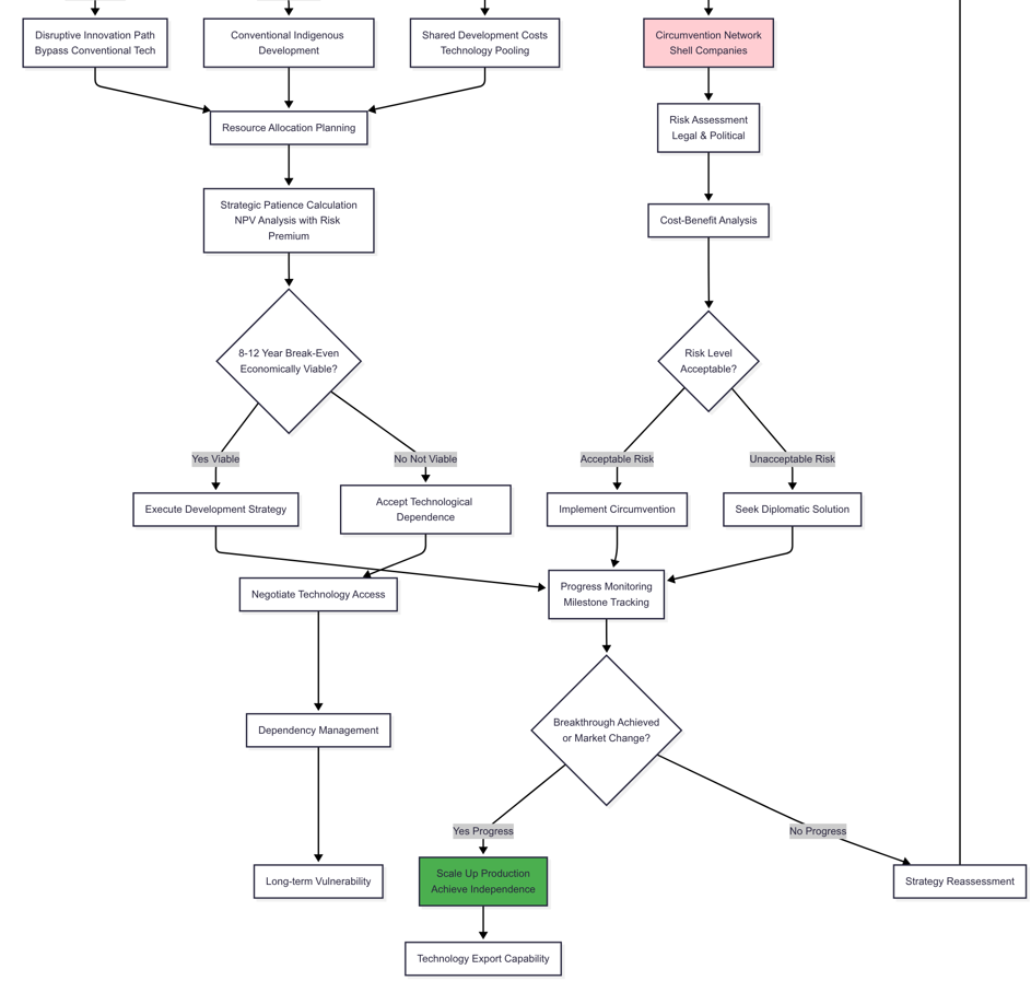 The most advanced asymmetric approach is to actively seek out alternative technological paradigms that sidestep embargoed technologies altogether. Instead of trying to imitate denied capabilities, target states may invest in essentially dissimilar means that accomplish comparable results through distinct paths. This approach turns technology denial from a limitation into an innovation driver.