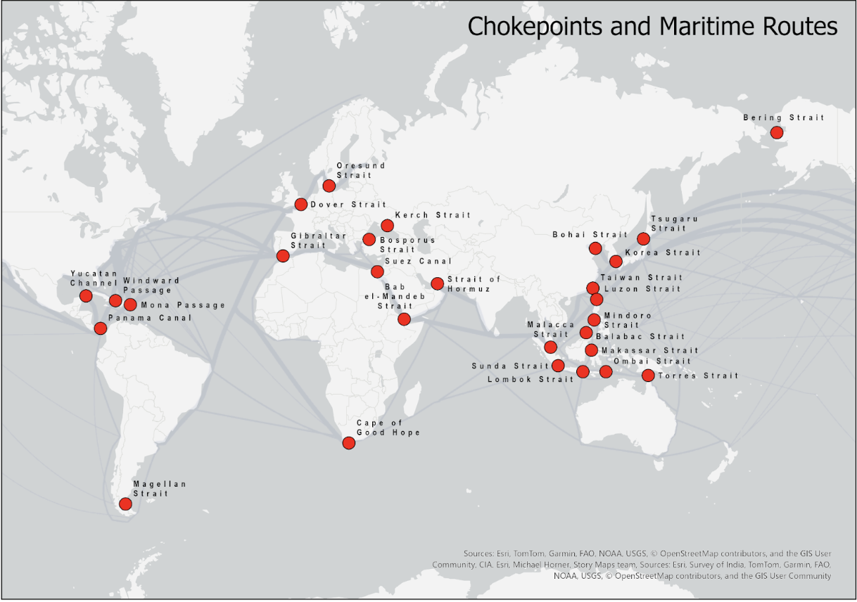 U.S. Energy Information Administration (EIA). “World Oil Transit choke points.” Washington, DC: U.S. Department of Energy, 2024. Link.↩︎