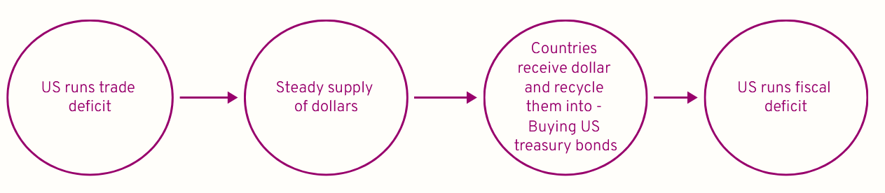 As global trade expanded, the world’s demand for dollar liquidity expanded too, and that’s where the problems started to raise their heads. As trade increased, the world needed more dollars to circulate outside the US. Robert Triffin hence argued in the 1960s8 (which later came to be known as the Triffin Dilemma), if the world wanted the dollar as its reserve currency, the US had to supply it.9